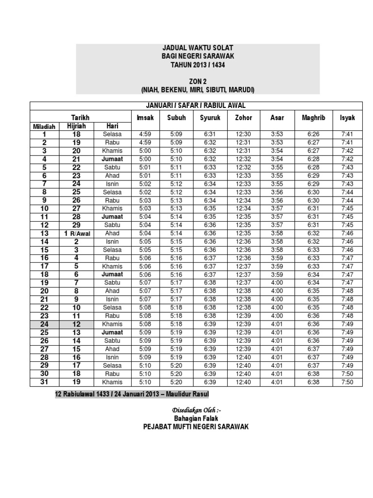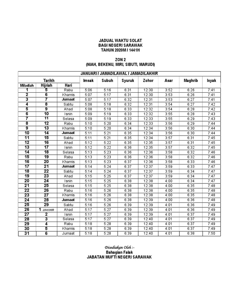 Waktu Solat Niah Belaga Sibuti Miri Bekenu Dan Marudi 2021